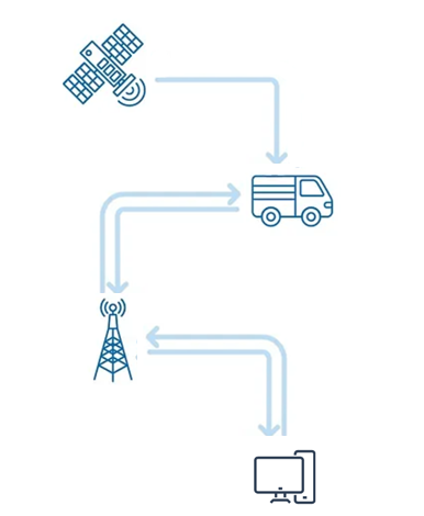 Установленный на автомобиль модуль принимает сигналы со спутников GPS и/или ГЛОНАСС.